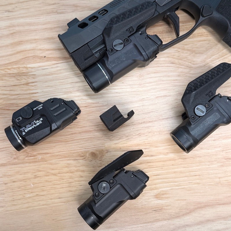 We found the prominent overbite on the P365 Fuse visually unappealing, so we designed a subtle cosmetic extension that mounts onto the dust cover, effectively closing the noticeable gap between the light and the slide.