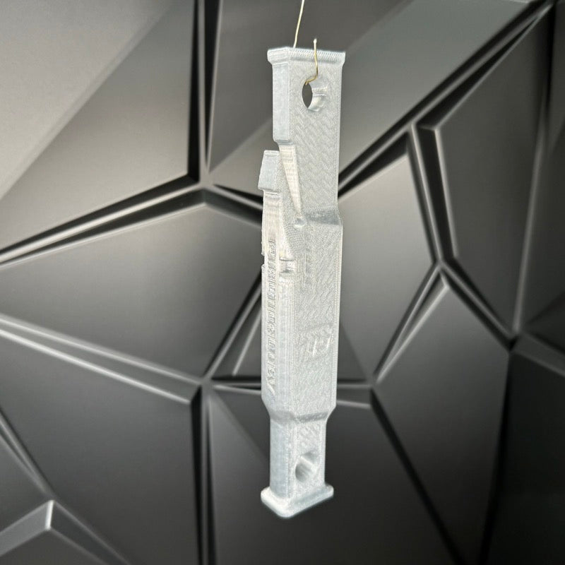 This is a fixture for better holding, hanging, and handling Sig P365 frames of all types during the Cerakote process.